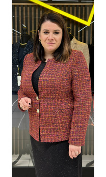 Klasyczny żakiet boucle kratka czarno biała 42-52