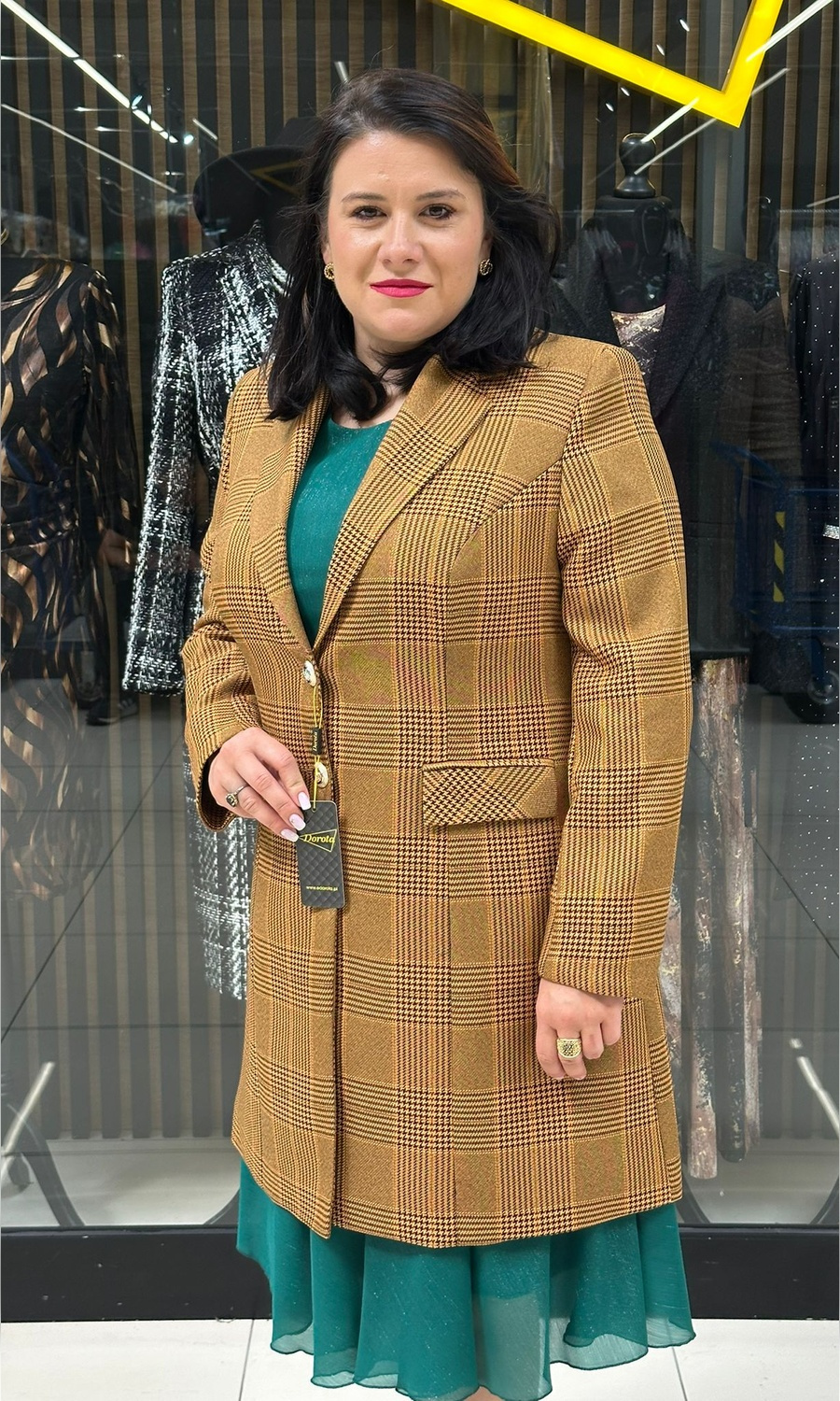 Długi żakiet dla puszystych o prostym kroju z okrągłym dekoltem i zapięciem na klamerkę. Model XXL z długim rękawem i kieszeniami. Dzięki taliowaniu, doskonale podkreśla atuty sylwetki. Taki żakiet w dużym rozmiarze nosić można zarówno jesienią, jak i wczesną wiosną. Ma on ponadczasowy fason XXL, który będzie się prezentować korzystnie na osobach w każdym wieku, bez względu na typ figury. Skutecznie zamaskuje on wszelkiego rodzaju mankamenty sylwetki. Długi żakiet jest niezwykle uniwersalny, dzięki czemu sprawdzi się zarówno jako element eleganckich stylizacji, na przykład do pracy czy na randkę, jak i nieco luźniejszych, na przykład na spotkanie z przyjaciółmi. Pod spód włożyć możemy tak sukienkę dla puszystych, jak i top oraz spódnicę czy koszulę i jeansy. Długi żakiet PLUS SIZE będzie się prezentował korzystnie zarówno w zestawieniu ze szpilkami, jak i płaskimi butami. Doskonałe uzupełnienie takiej stylizacji stanowić będzie na przykład przewiązana wokół szyi apaszka i dopasowana kolorystycznie torebka.