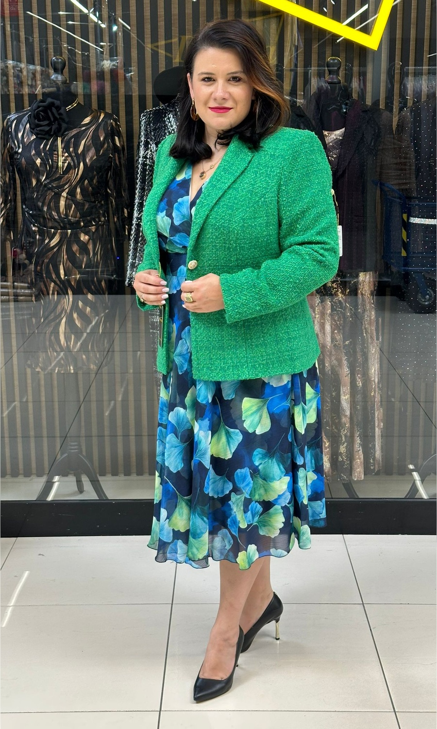 Klasyczny żakiet z kołnierzem i guzikami to jeden z elementów garderoby, którego nie może zabraknąć w szafie żadnej kobiety. Proponowany przez nas model to klasyczny żakiet dla puszystych w kolorze ecru z możliwością podwinięcia rękawów. Jest zapinany na 2 guziki i posiada kieszenie po bokach. Pionowe przeszycia doskonale wydłużają i wysmuklają sylwetkę, co docenią w szczególności kobiety w rozmiarze plus size. Taki żakiet XXL jest niezwykle praktyczny - włożyć można go zarówno do pracy, jak i na spotkanie z klientem, randkę czy wyjście z przyjaciółmi. Tego typu krój nigdy nie wychodzi z mody i pasować będzie każdej kobiecie, bez względu na wiek, typ urody czy noszony rozmiar. Żakiet zestawić można tak z koszulą (gładką lub wzorzystą), topem z krótkim rękawem lub na ramiączkach, bluzką z długim rękawem czy sukienką. Doskonale komponować będzie się on z ubraniami z naszego sklepu. Żakiet nadaje się do noszenia przez cały rok. Został wykonany z wysokiej jakości materiałów, dzięki czemu mogą Panie mieć pewność, że za kilka sezonów będzie się on prezentował równie stylowo.