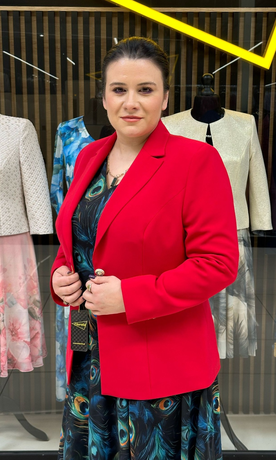Klasyczny żakiet ostra klapa czerwony 42-52