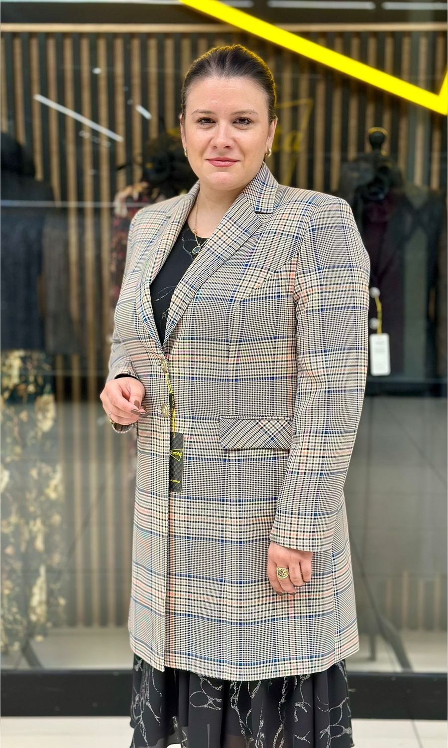 Klasyczny płaszczyk krata beż seledyn 42-52