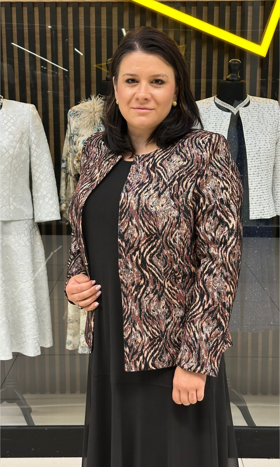 Żakardowy żakiet stworzony jest z myślą o modnych kobietach w większych rozmiarach 42-52. Żakiet wykonany jest z miękkiej