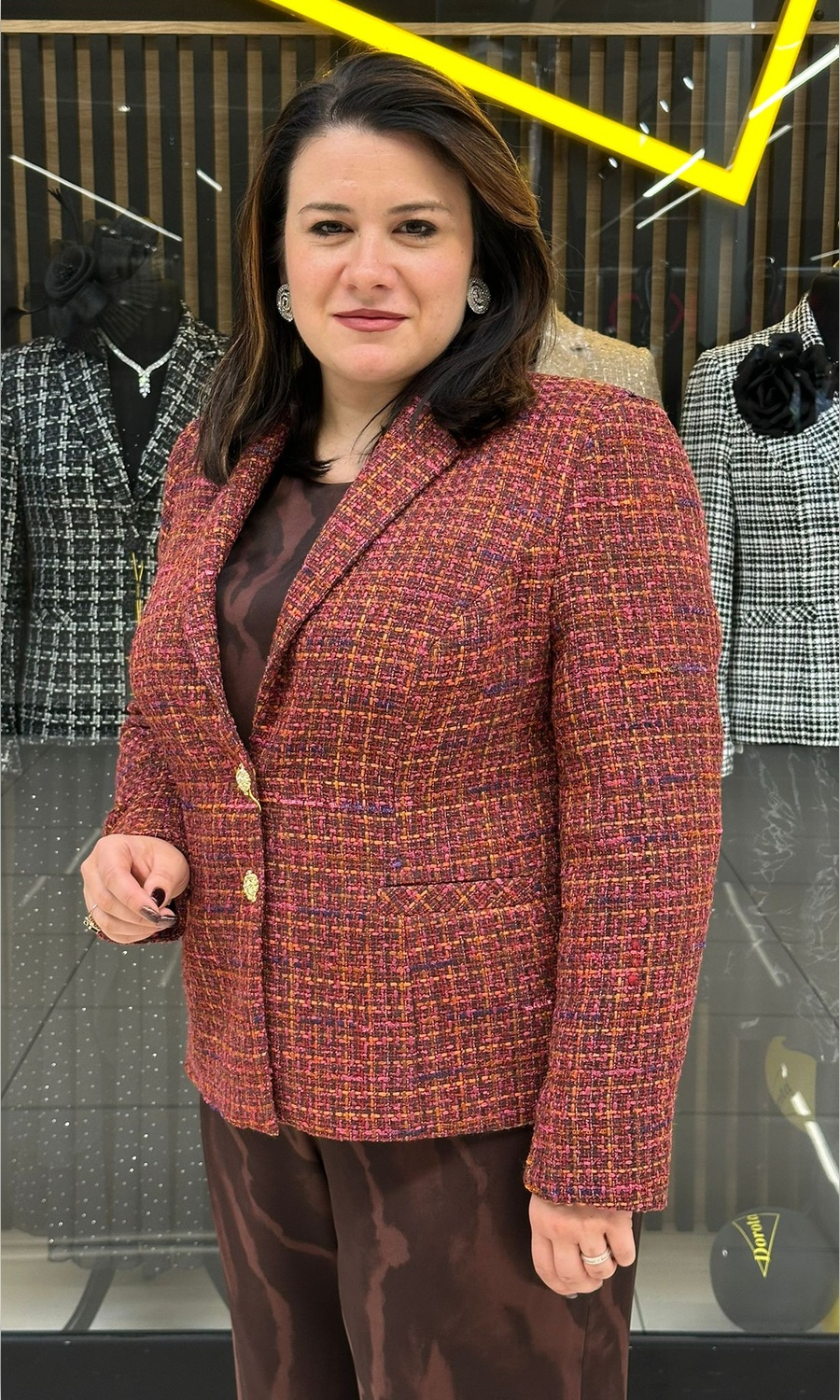 Klasyczny żakiet z kołnierzem i guzikami to jeden z elementów garderoby, którego nie może zabraknąć w szafie żadnej kobiety. Proponowany przez nas model to klasyczny żakiet dla puszystych. Jest zapinany na 2 eleganckie zdobione guziki i posiada kieszenie po bokach z patkami. Pionowe przeszycia doskonale wydłużają i wysmuklają sylwetkę, co docenią w szczególności kobiety w rozmiarze plus size. Taki żakiet XXL jest niezwykle praktyczny - włożyć można go zarówno do pracy, jak i na spotkanie z klientem, randkę czy wyjście z przyjaciółmi. Tego typu krój nigdy nie wychodzi z mody i pasować będzie każdej kobiecie, bez względu na wiek, typ urody czy noszony rozmiar. Żakiet zestawić można tak z koszulą (gładką lub wzorzystą), topem z krótkim rękawem lub na ramiączkach, bluzką z długim rękawem czy sukienką. Doskonale komponować będzie się on z ubraniami z naszego sklepu. Żakiet nadaje się do noszenia przez cały rok. Został wykonany z wysokiej jakości materiałów, dzięki czemu mogą Panie mieć pewność, że za kilka sezonów będzie się on prezentował równie stylowo.